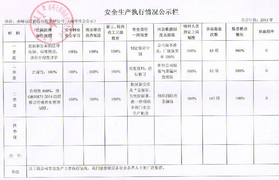 安全生产执行情况社会公示