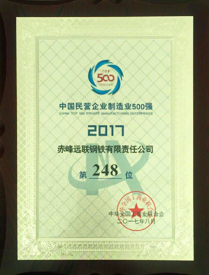 2017年8月,公司被中国工商联评为“中国民营企业500强第431位”